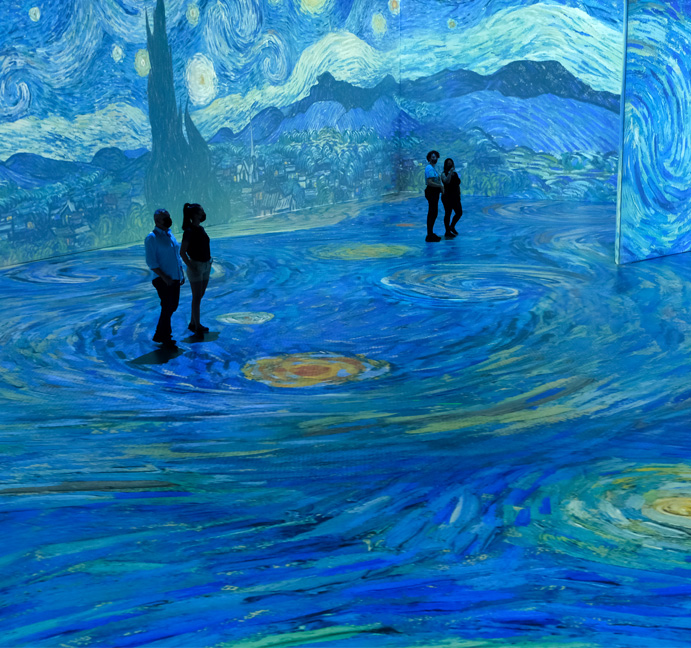 O Museu Van Gogh em Amsterdam usou a impressão em grande formato para criar uma exposição imersiva, transformando as pinturas famosas em ambientes que os visitantes podiam “entrar”